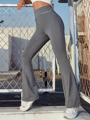 Ankle Length Grey Fitted Flare pants for Gym and Yoga