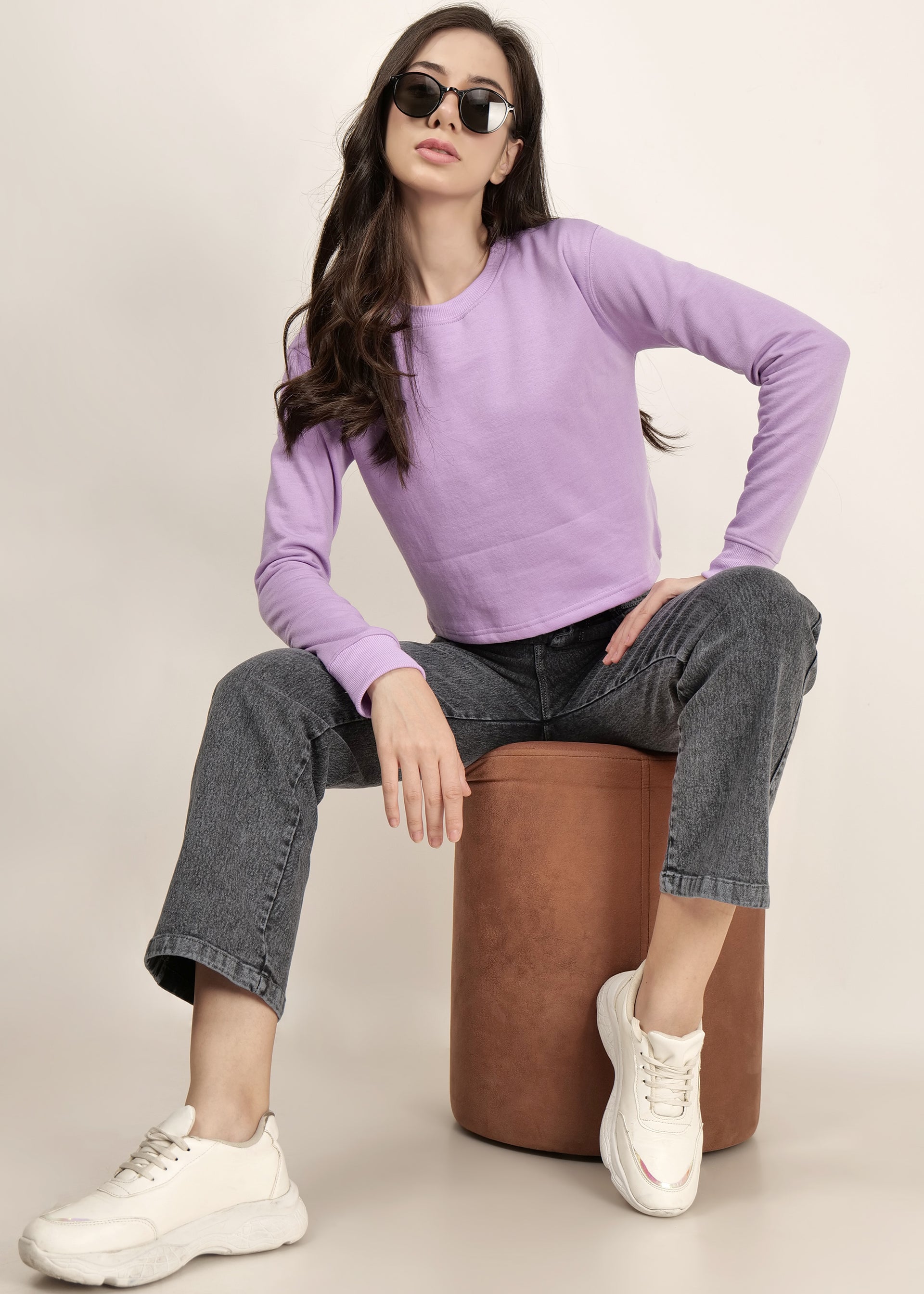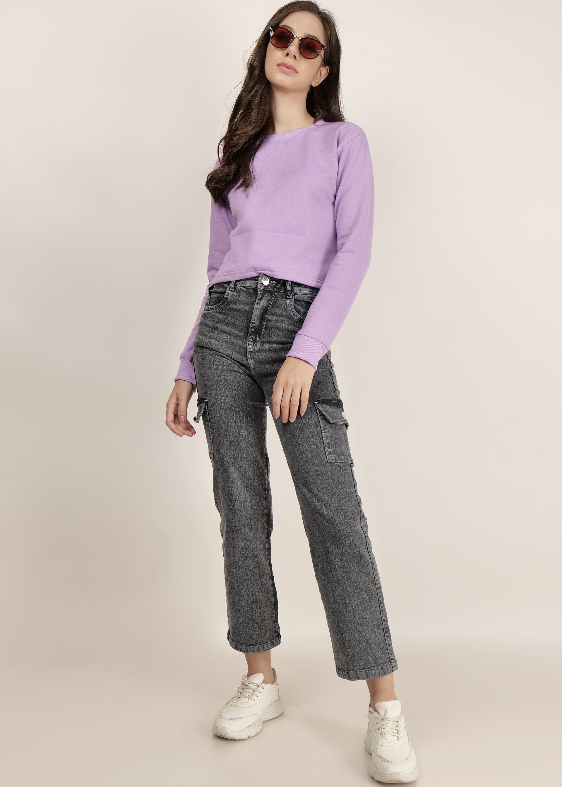 Crop Lavender women's Round Neck sweatshirt | pullover for women