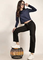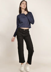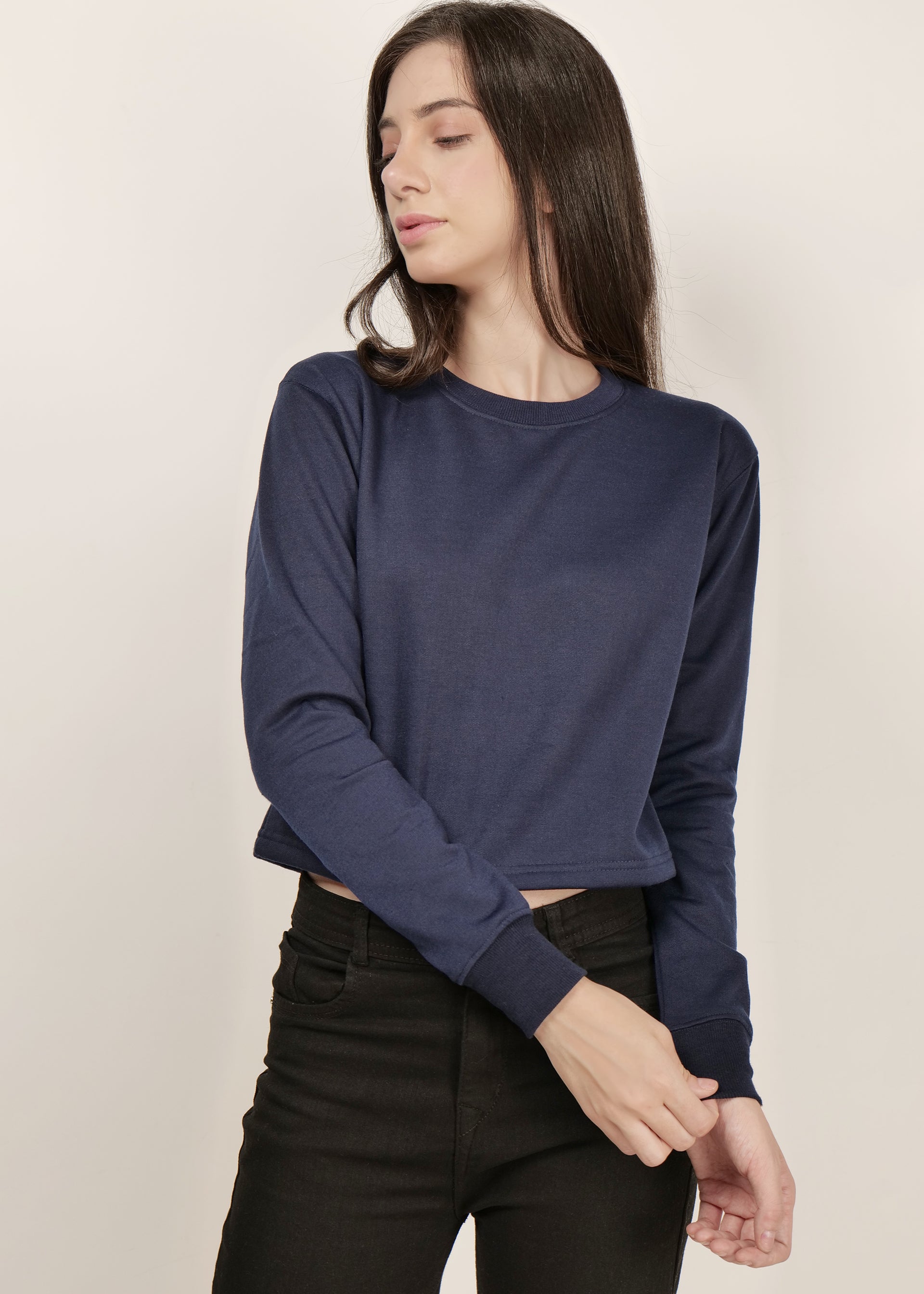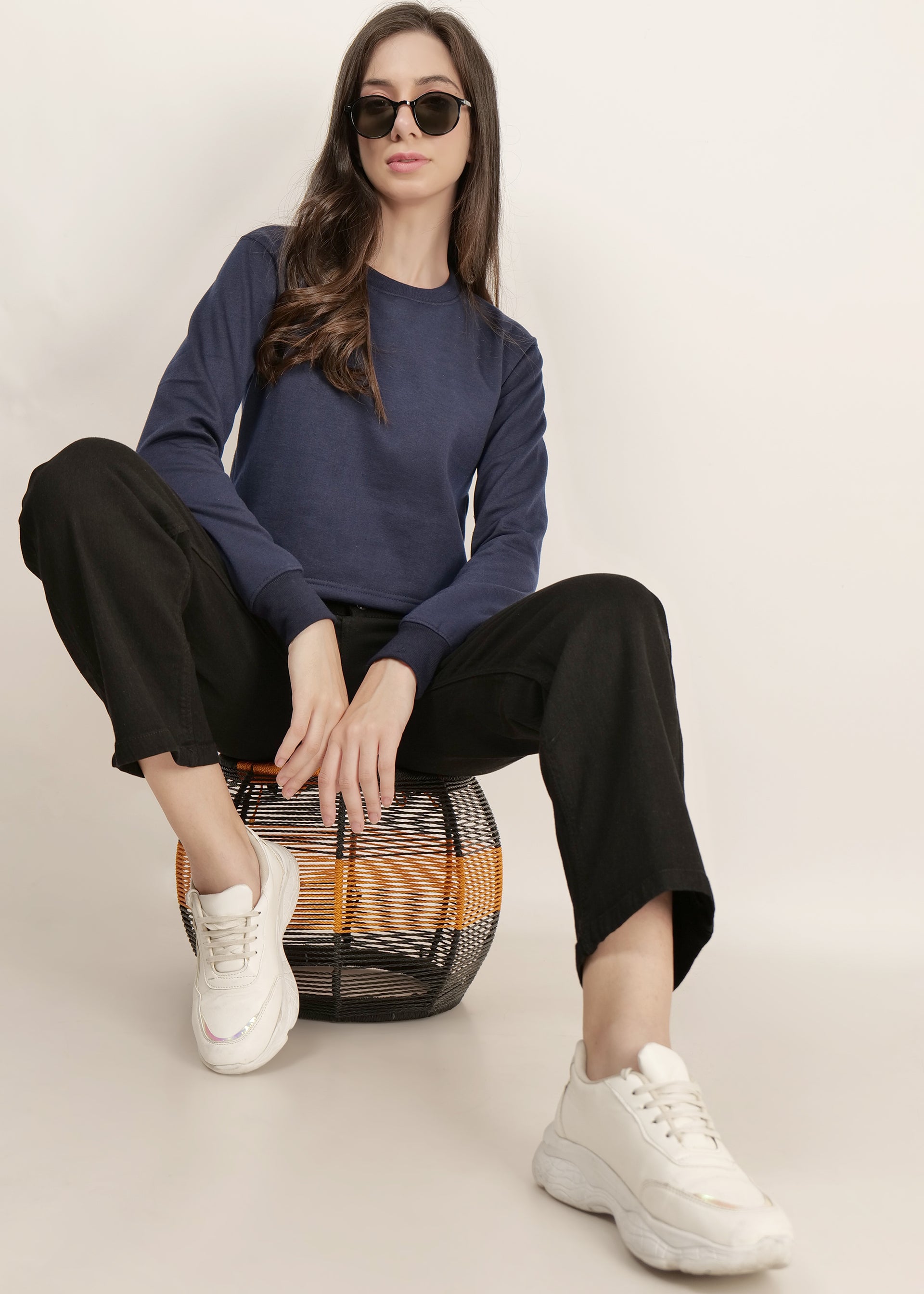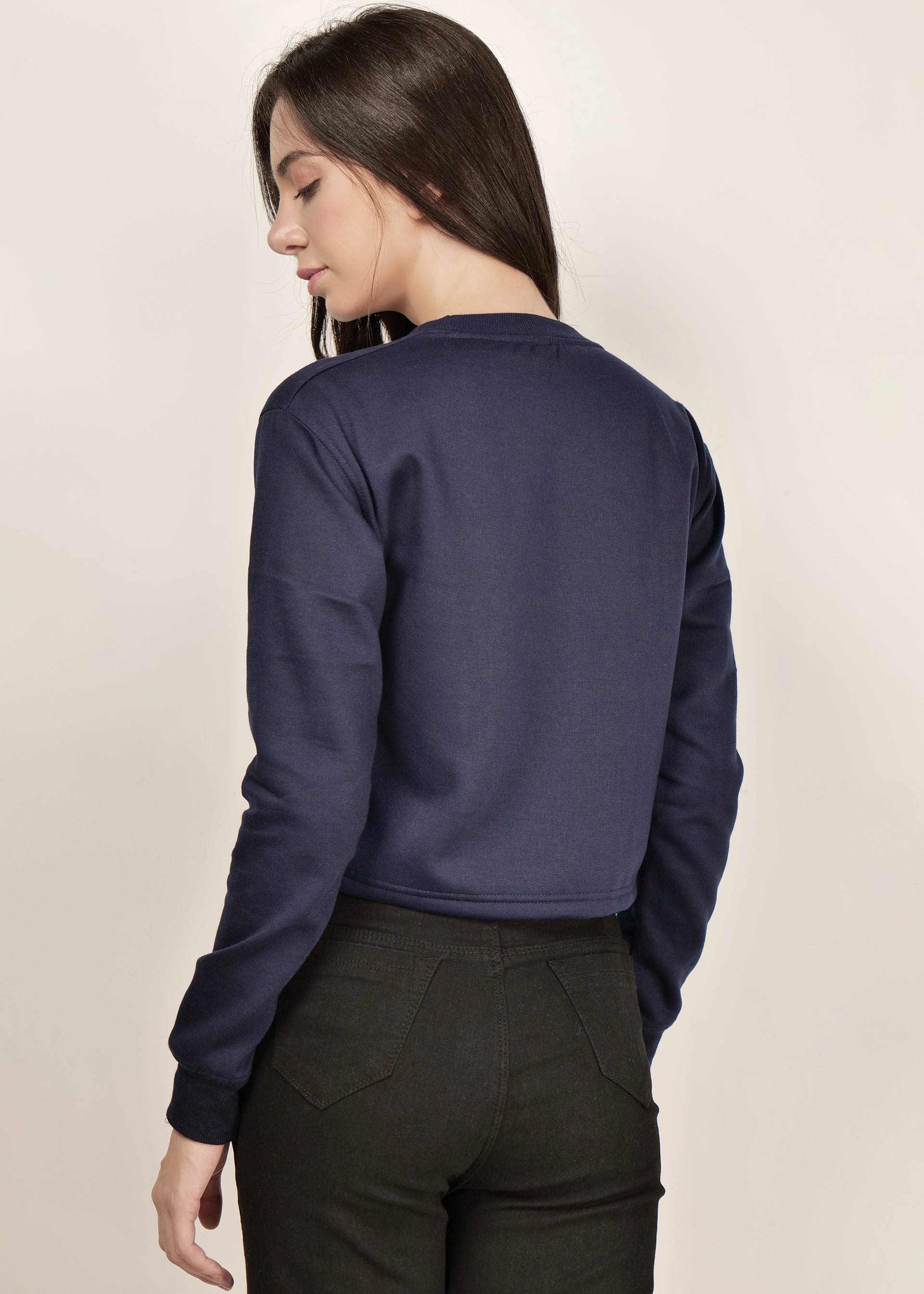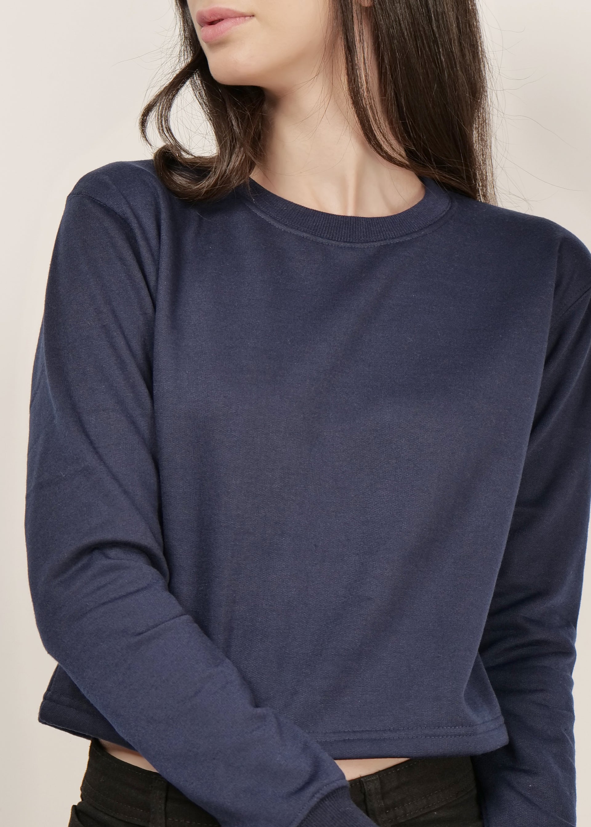 Crop Navy Blue Round Neck sweatshirt | pullover for women