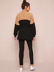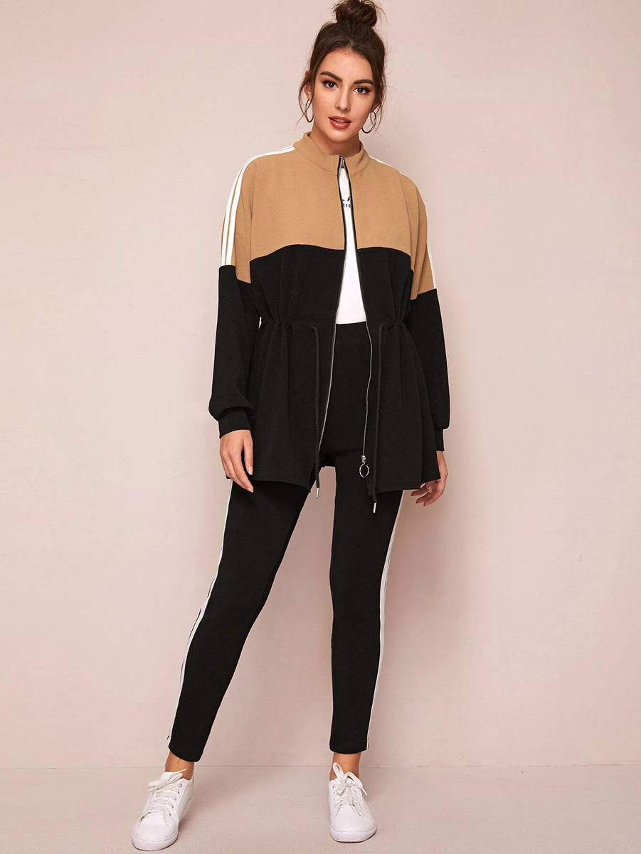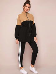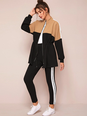 Subtle Work Zip Up Colorblock Long Sweatshirt & Striped Side Leggings Set