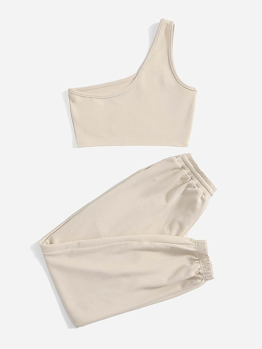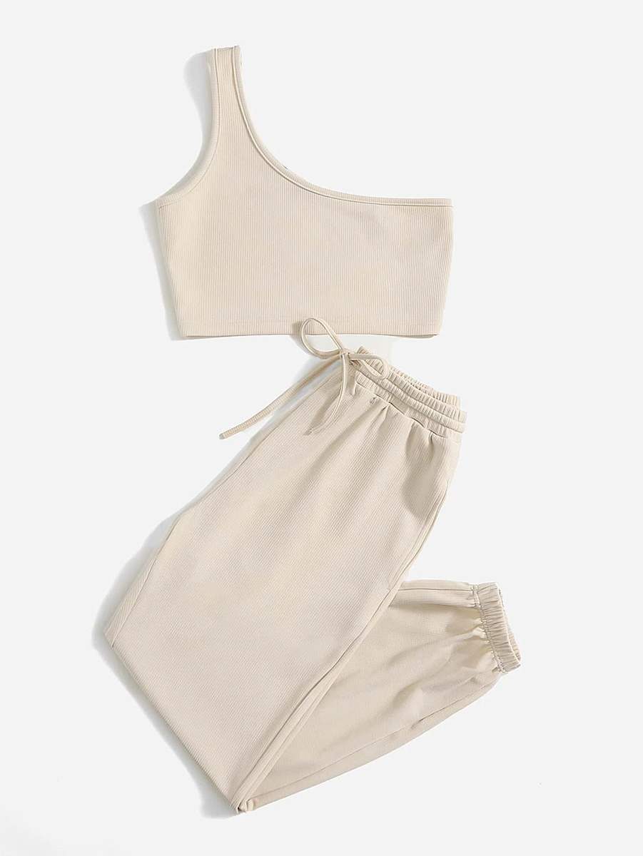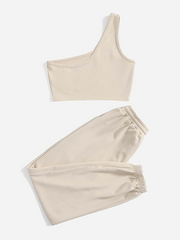 One Shoulder Top & Drawstring Waist Joggers