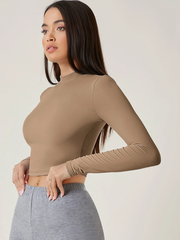 Subtle Heat Light Brown Mock Neck Crop Tank Top Deep neck full Sleeve