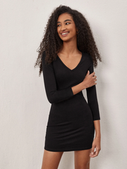 Elegant Black Bodycon Dress V-Neck Mid Thigh Length