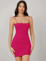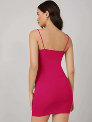 Spaghetti Strap Neck Bodycon Dress Magenta Pink