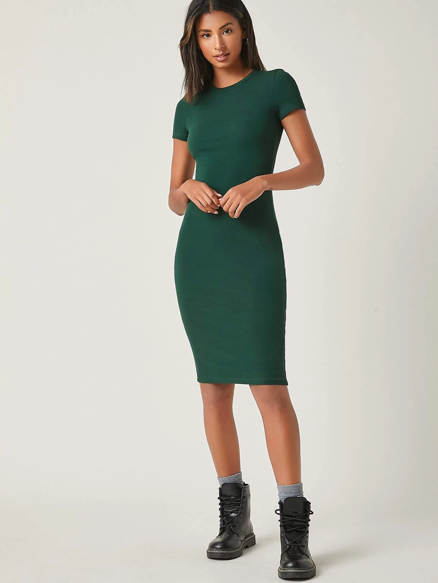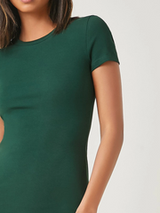 Subtle summer Dark Green Bodycon Dress Round Neck Short sleeves