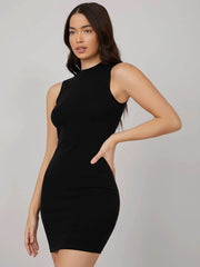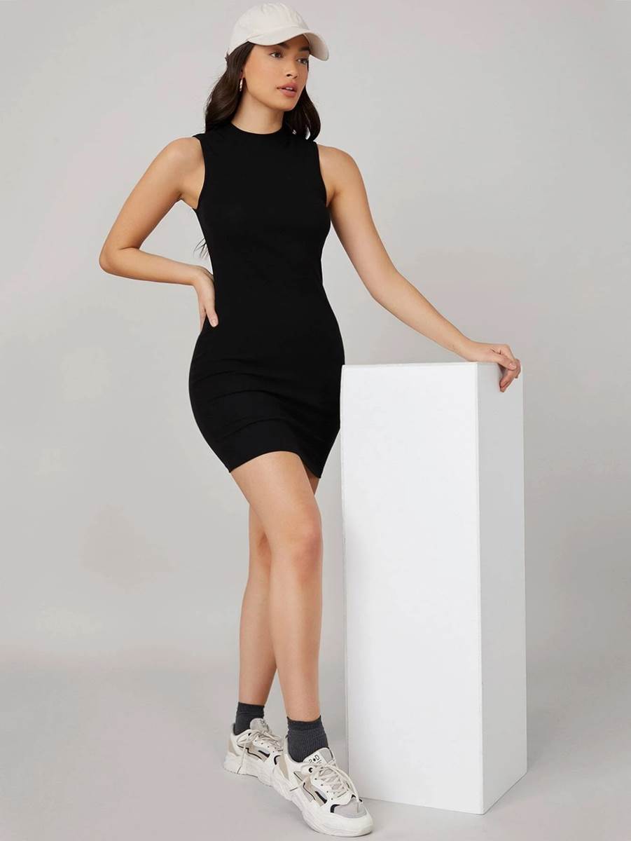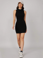 Summers love Mock Neck Black Bodycon Tank Dress | Tennis Dress