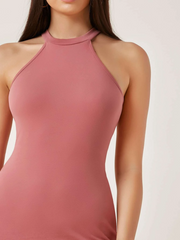 Women's Flamingo Pink Halter Neck Bodycon Dress