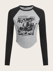 Figure & Letter Graphic Raglan Sleeve Tee