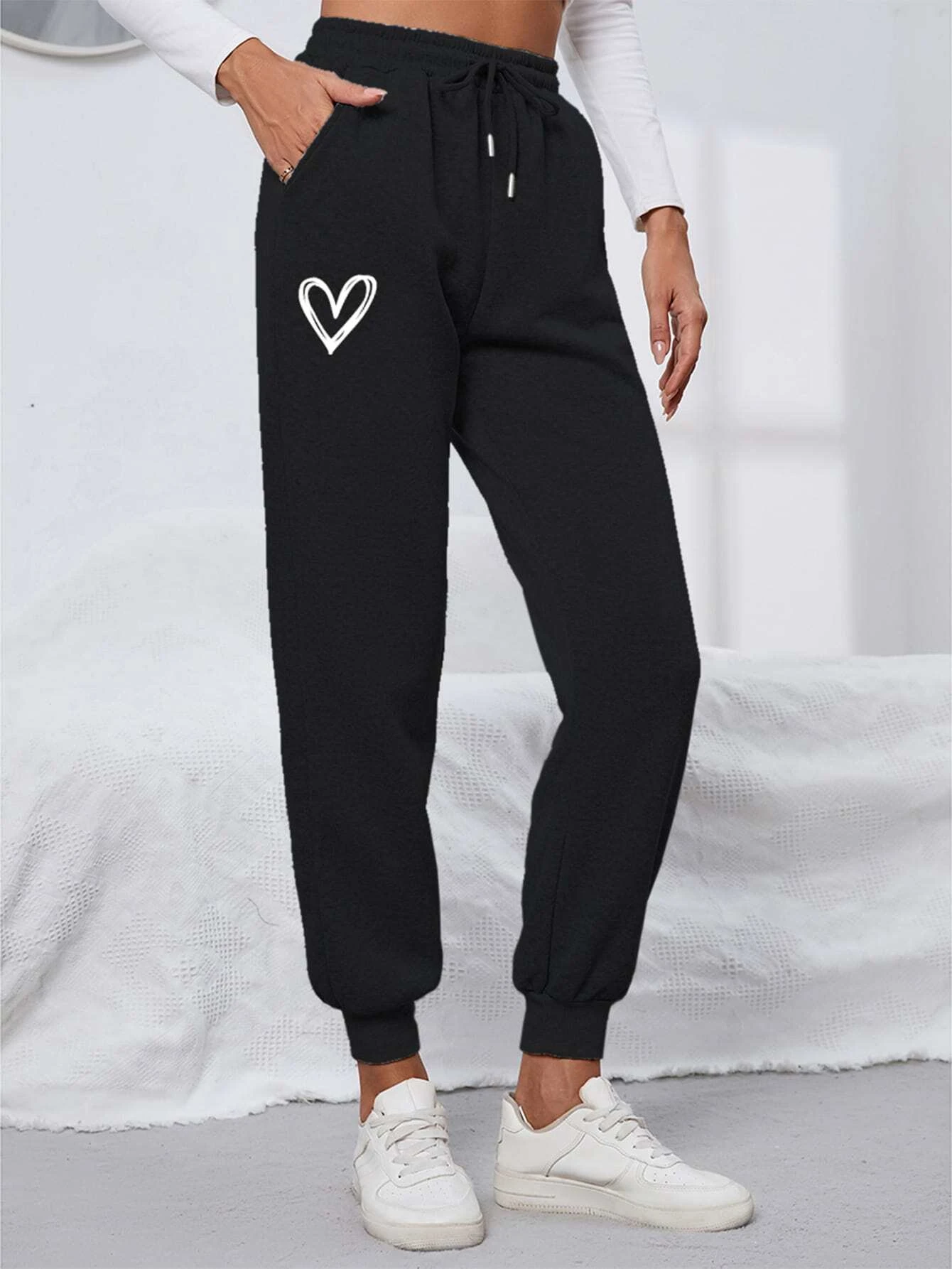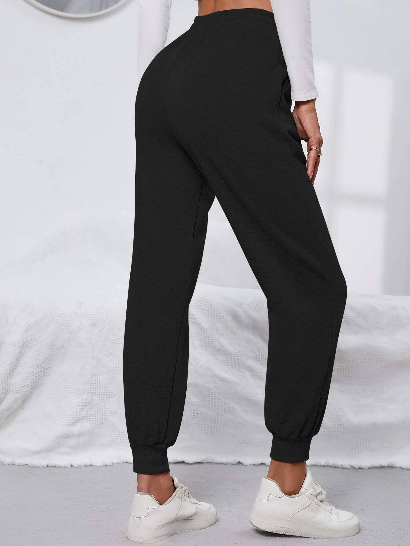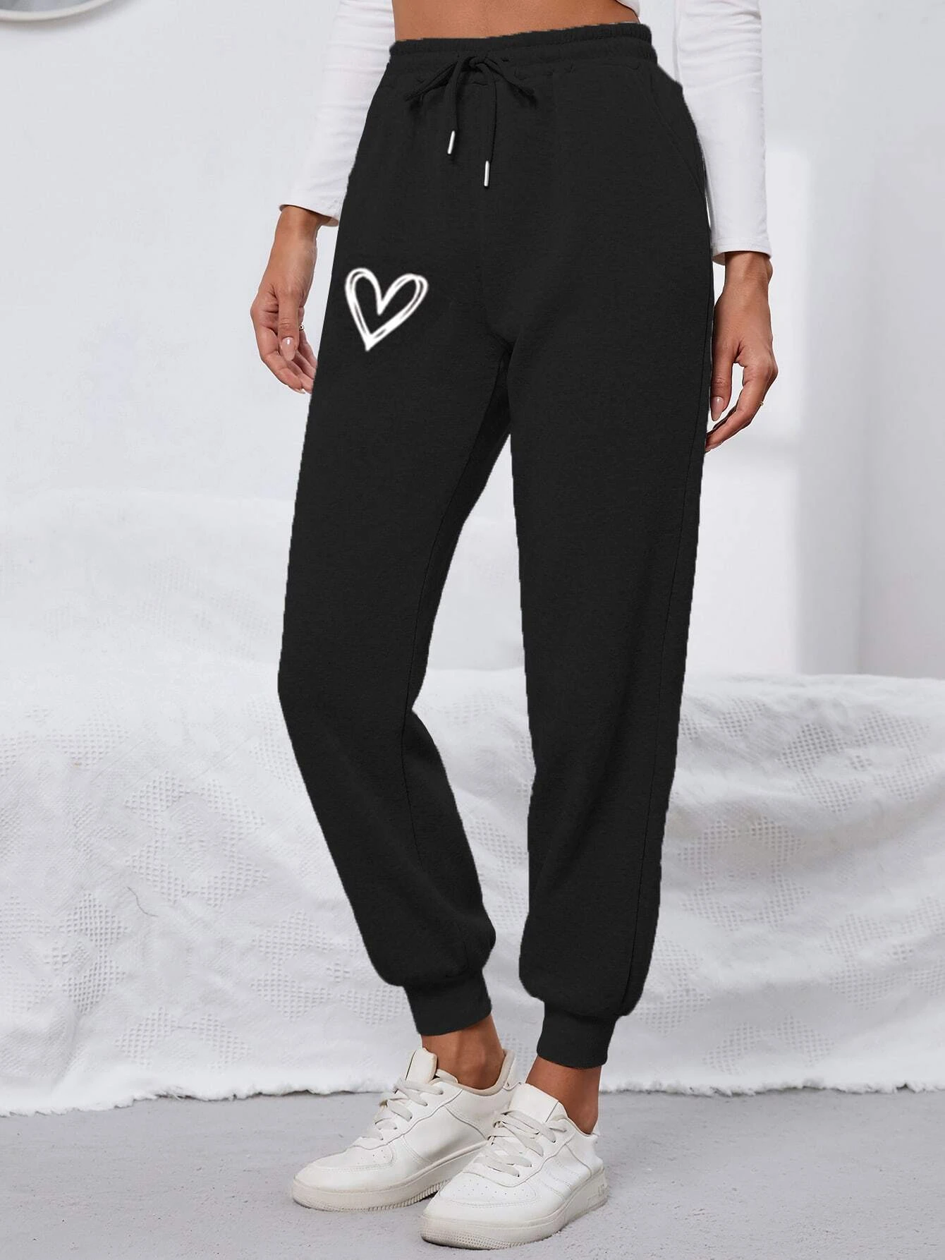 Women Regular Fit Black Printed Trousers