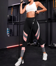 Black tights with grey and pink flex panels