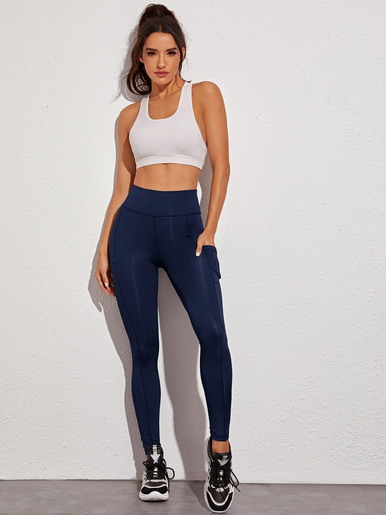 A pair of mid-rise running tights, has an elasticated waistband with slip-on closure