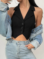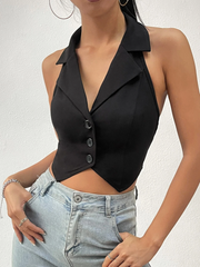 Backless Lapel Neck Asymmetrical Hem Crop Vest Blazer