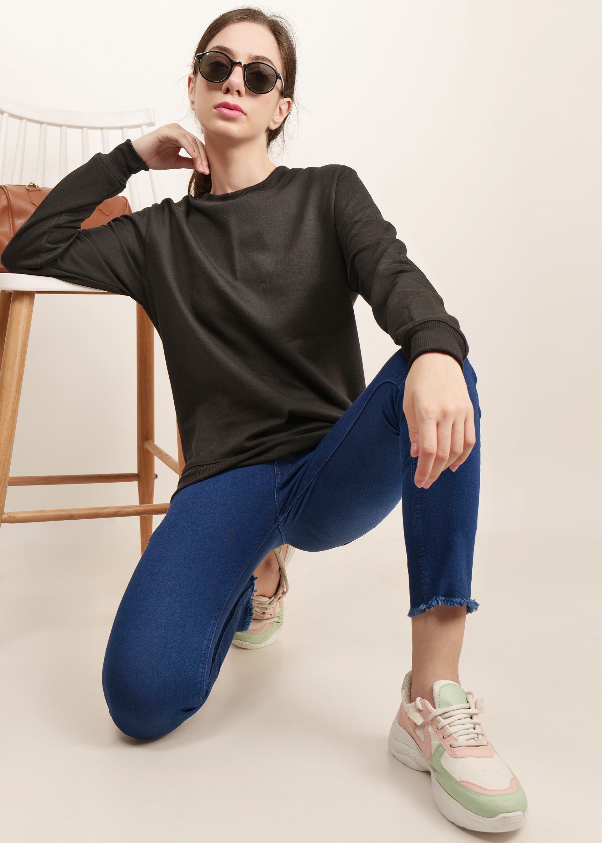 black women's Round Neck sweatshirt | pullover for women