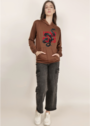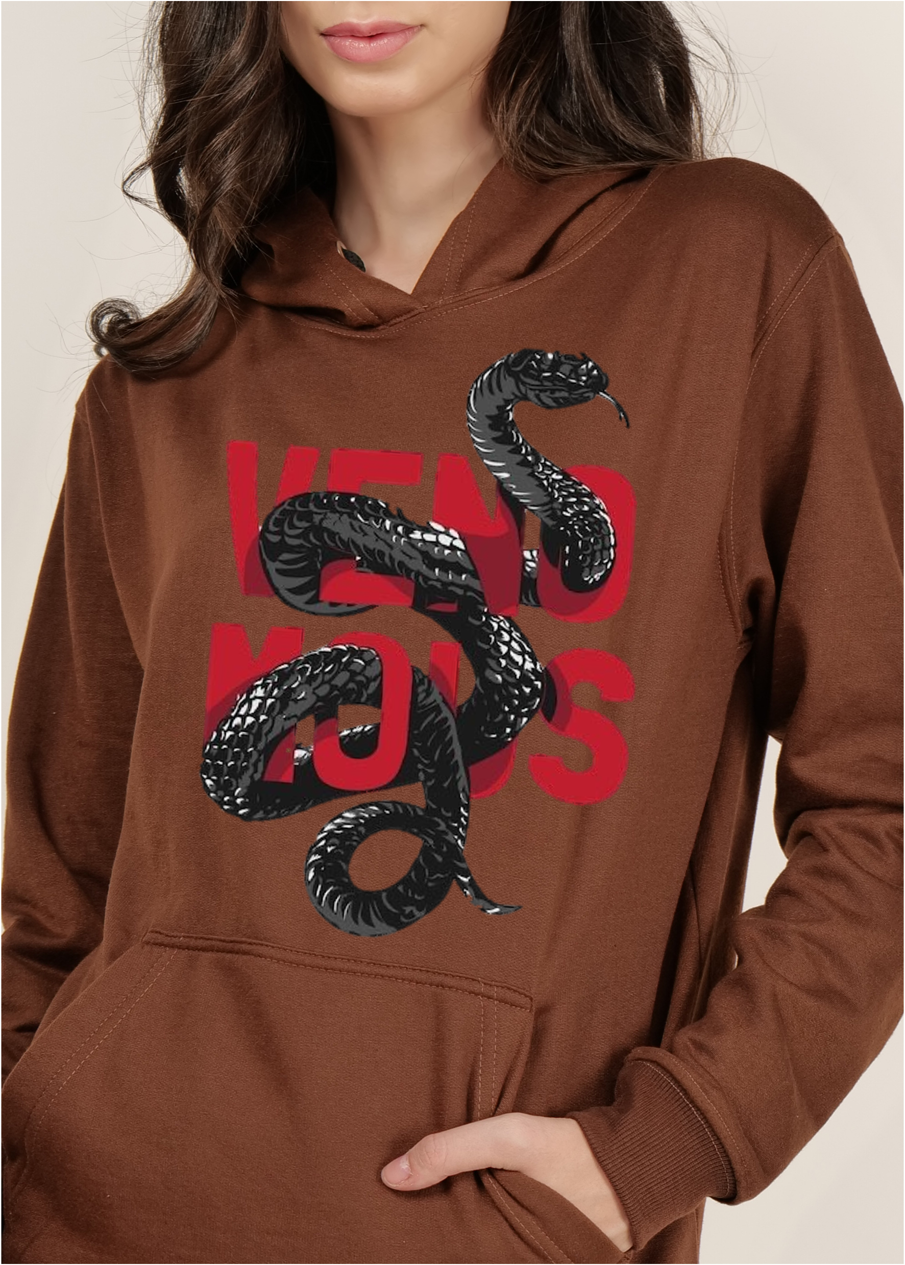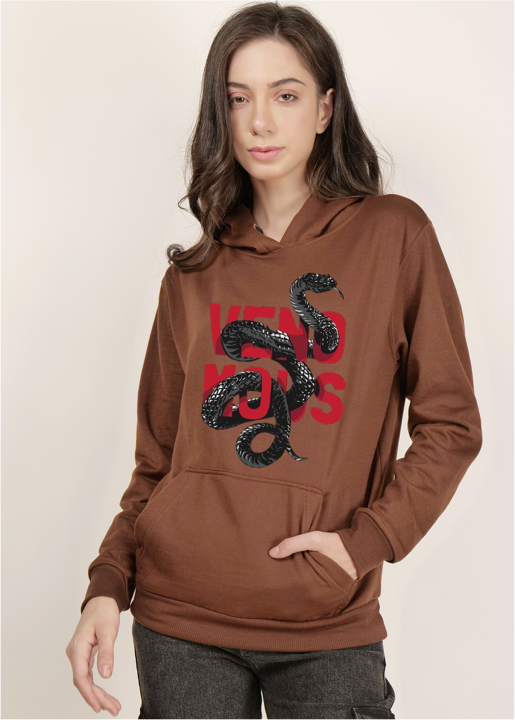 Brown women's hooded sweatshirt venomous print | pullover for women