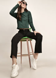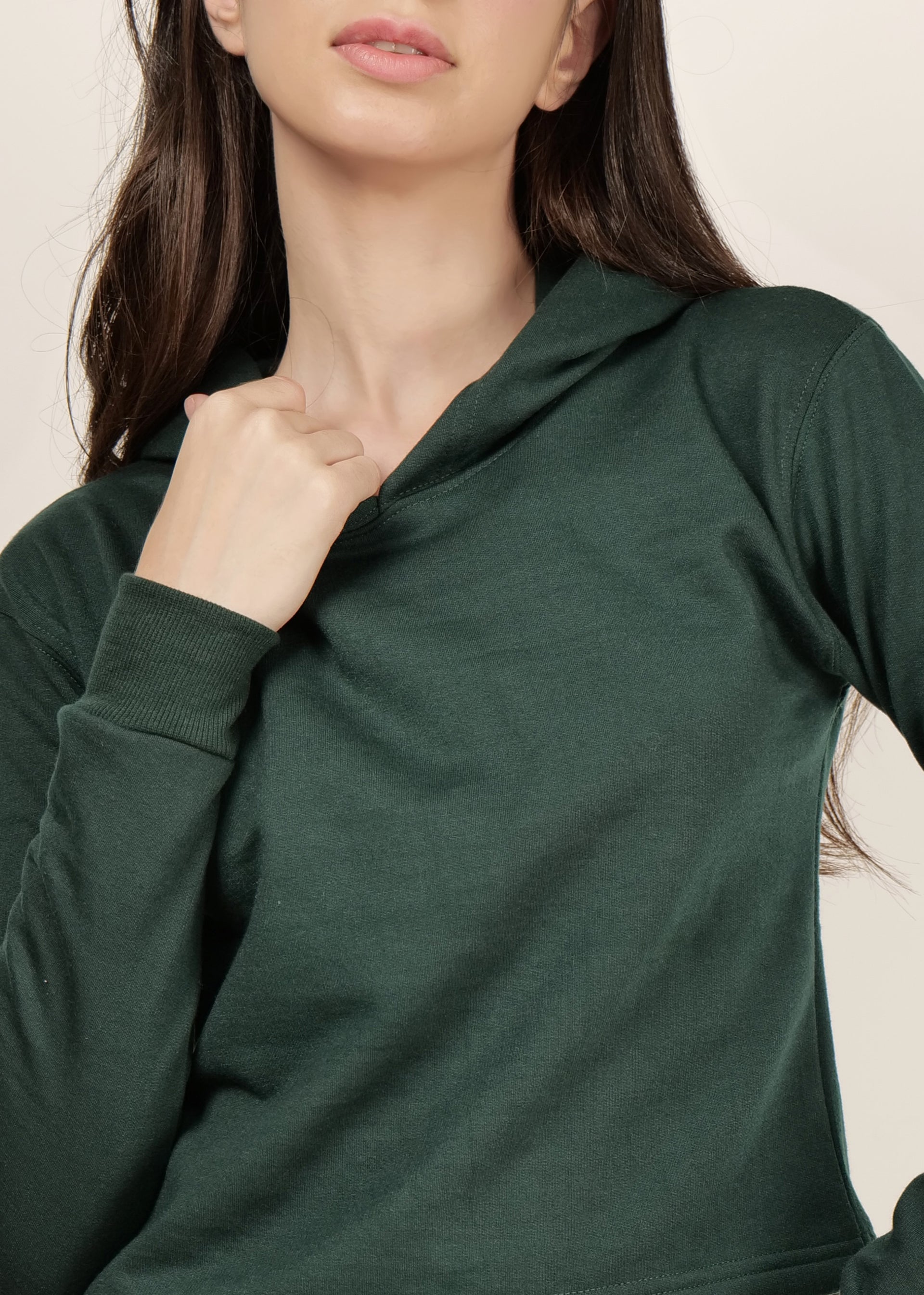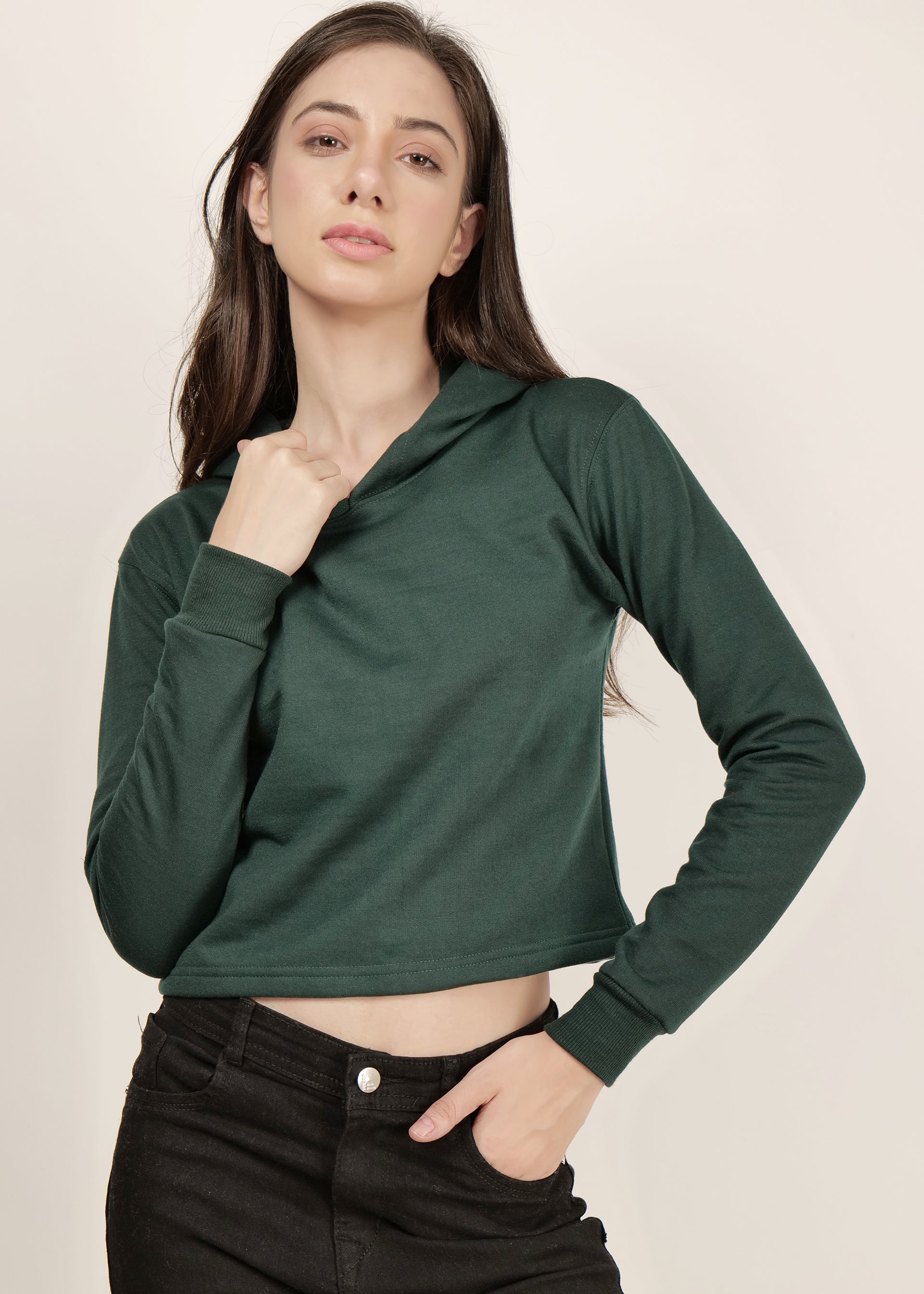 Crop Bottle Green Hooded| pullover for women