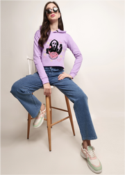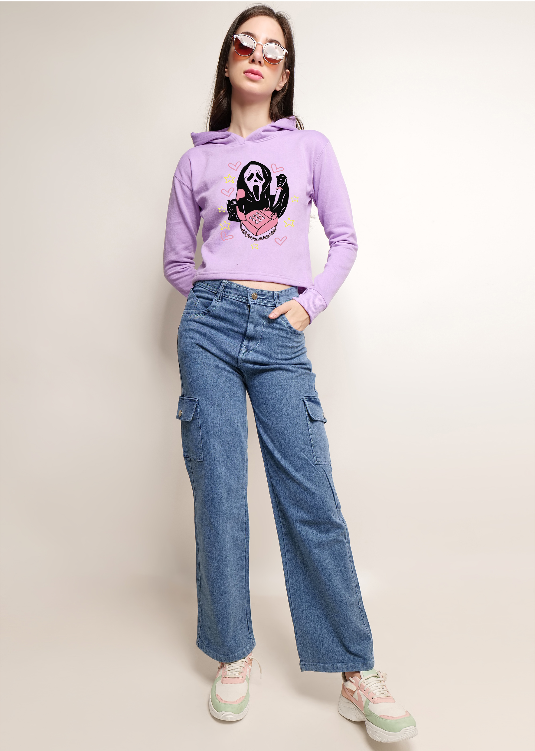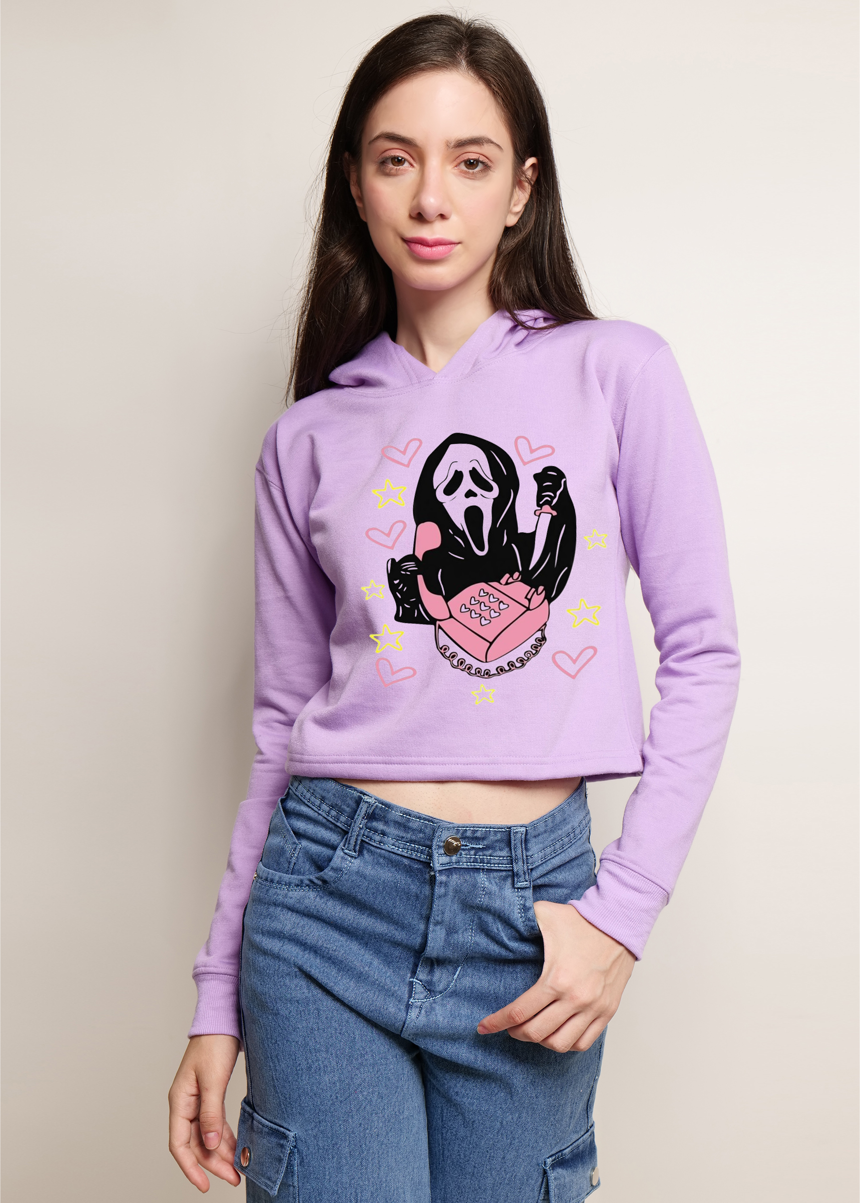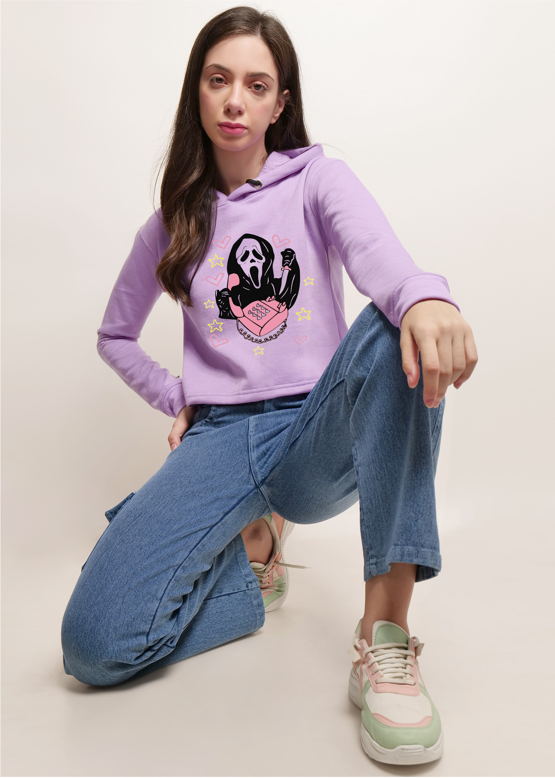 Crop Lavender Hoodie ghost call print | pullover sweatshirt