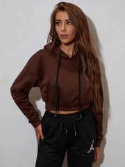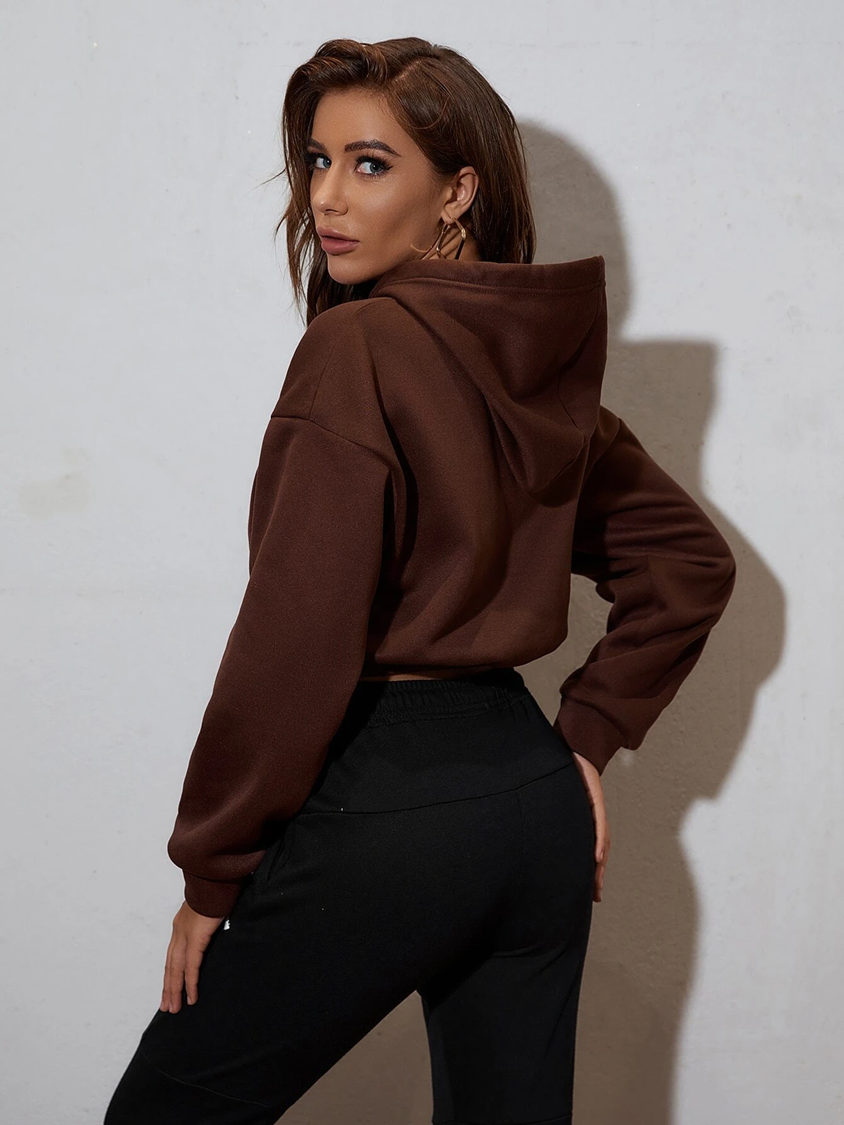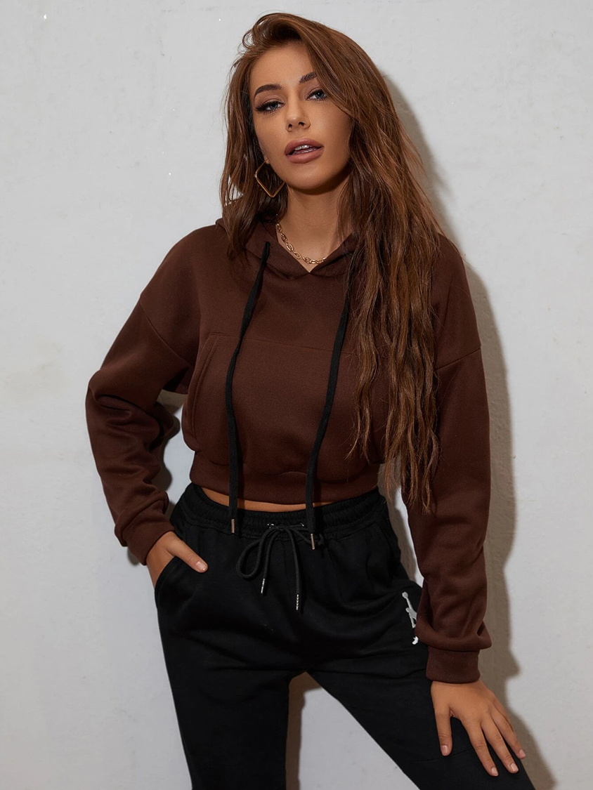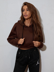 Dark Brown hoody crop hoodie with kangaroo pocket