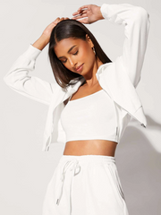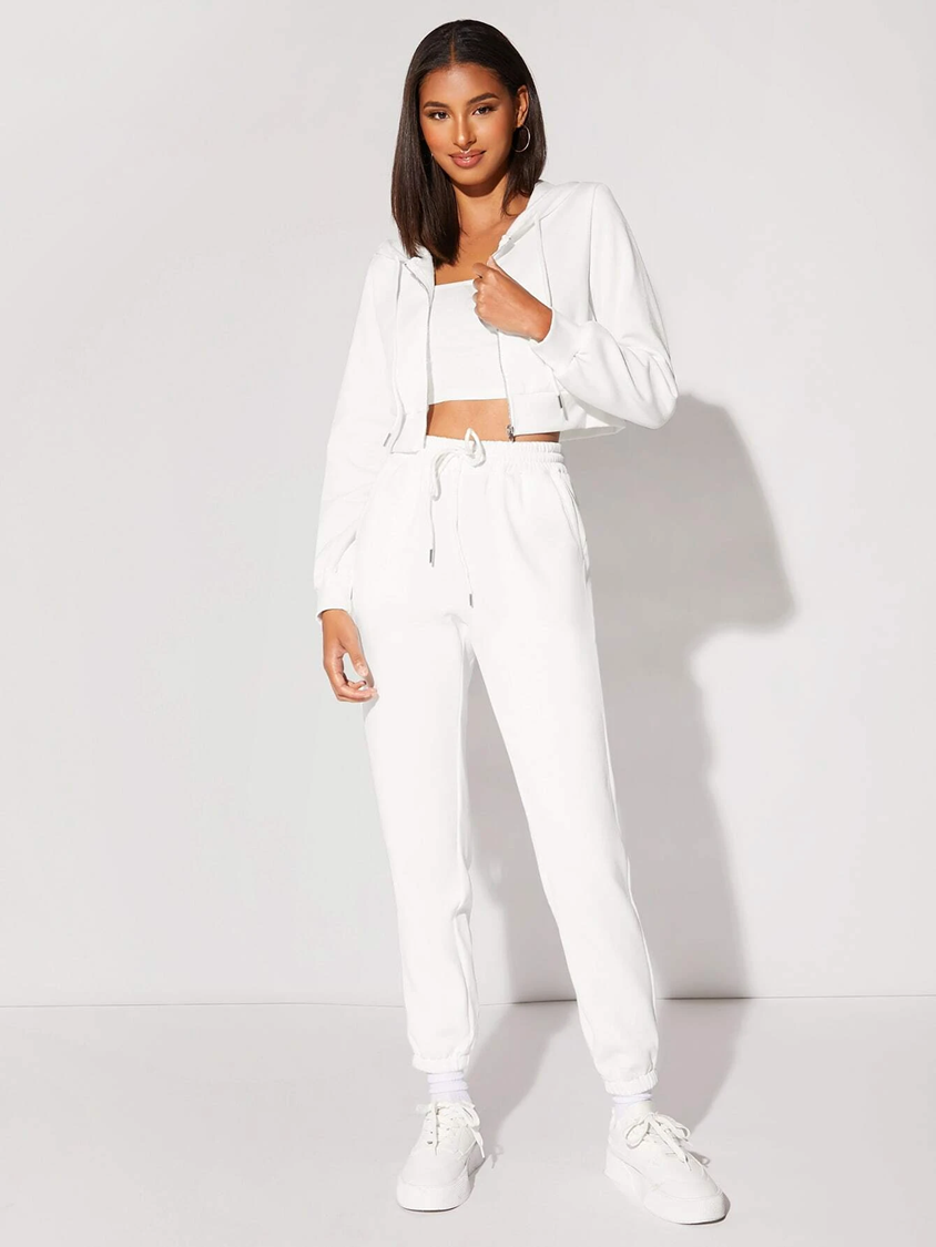 Women's 2 Piece snowy white crop zipper and joggers co-ord set