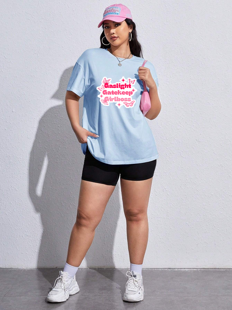 Girlboss sky blue baggy T-shirt oversized drop shoulder