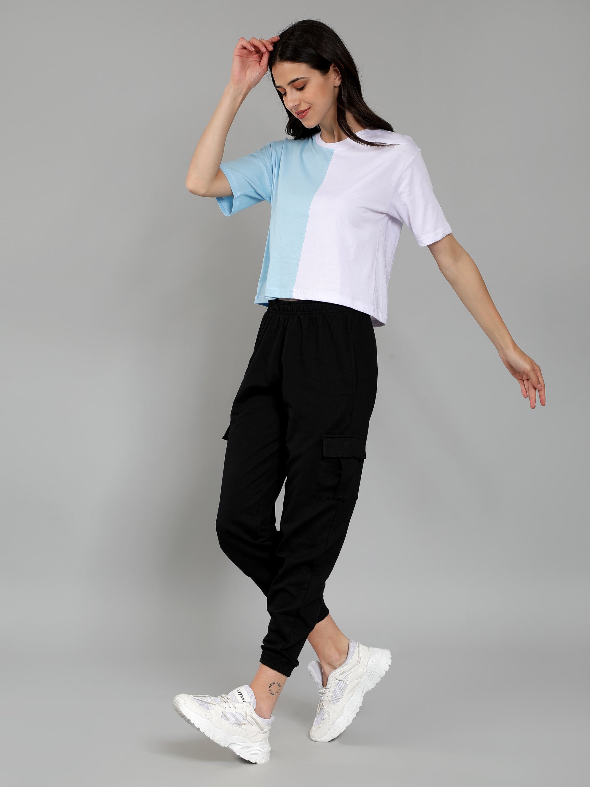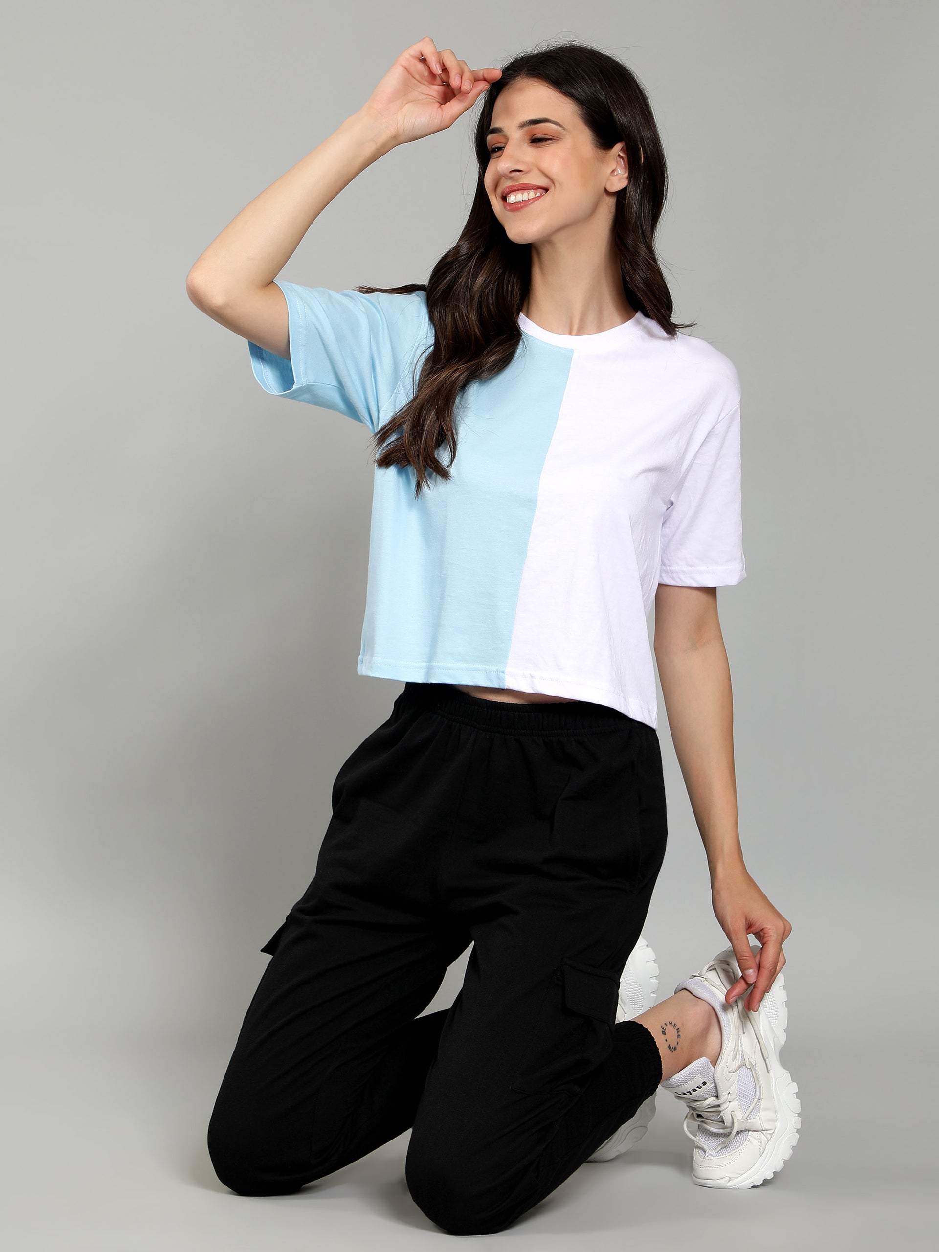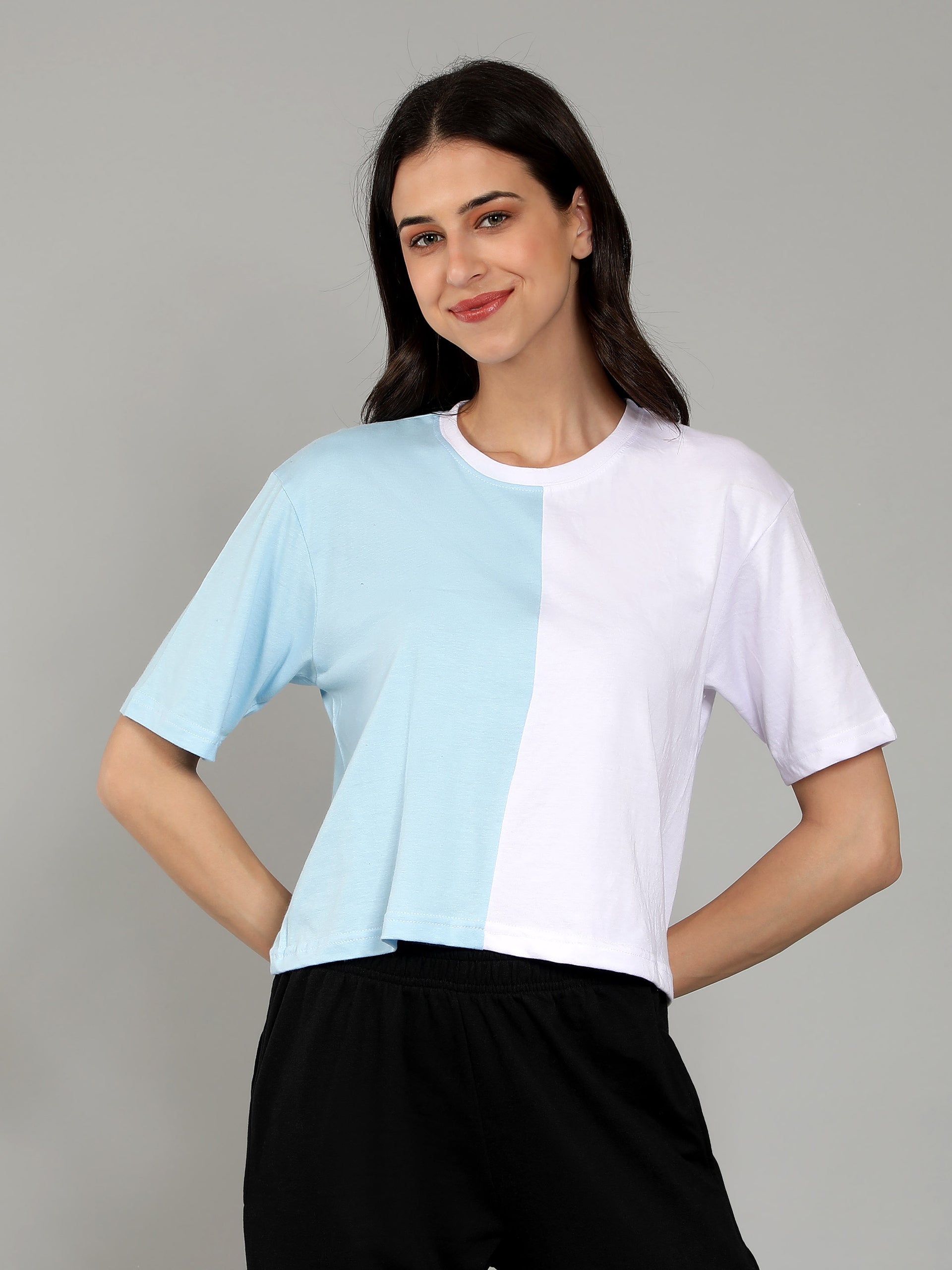 Half&Half Crop Drop Shoulder Plain Tshirt