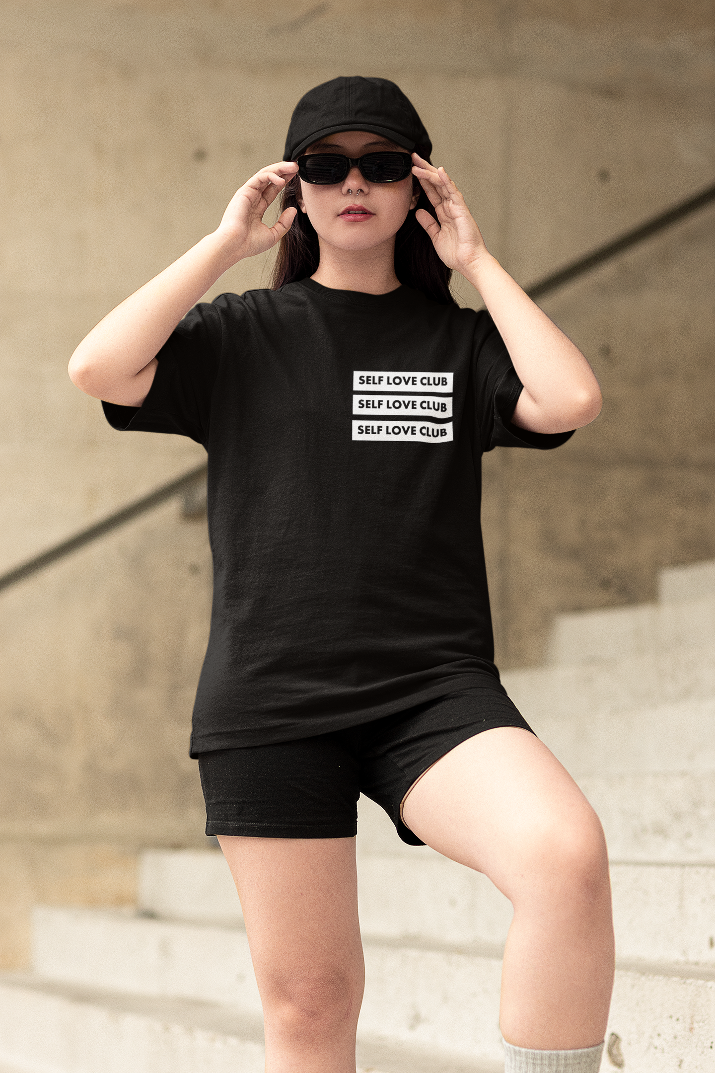 Love Yourself Baggy fit drop shoulder black T-shirt