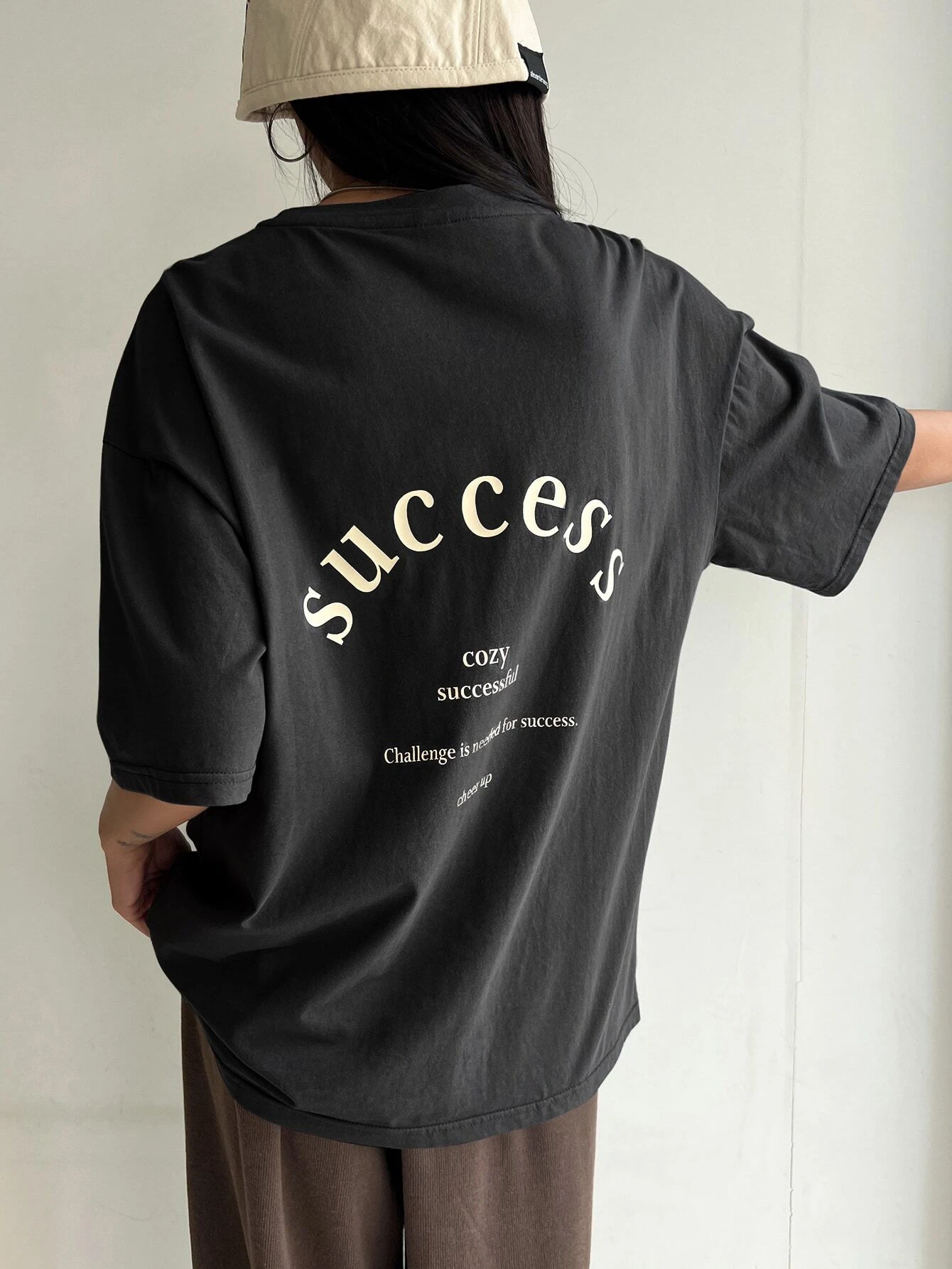 Success Cheer UP Blackbaggy fit women's Oversized Dropshoulder T-shirt